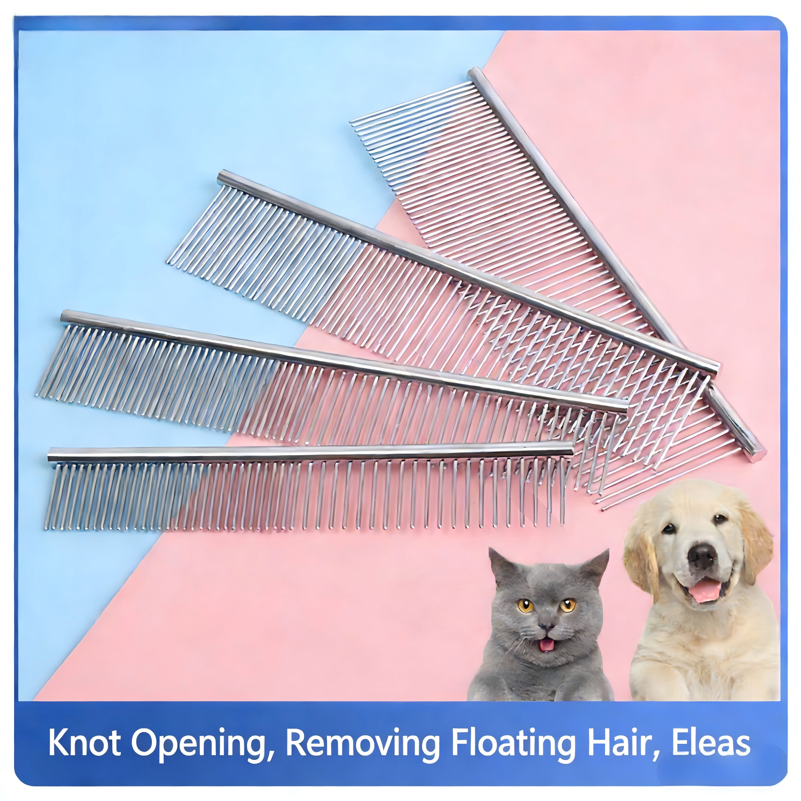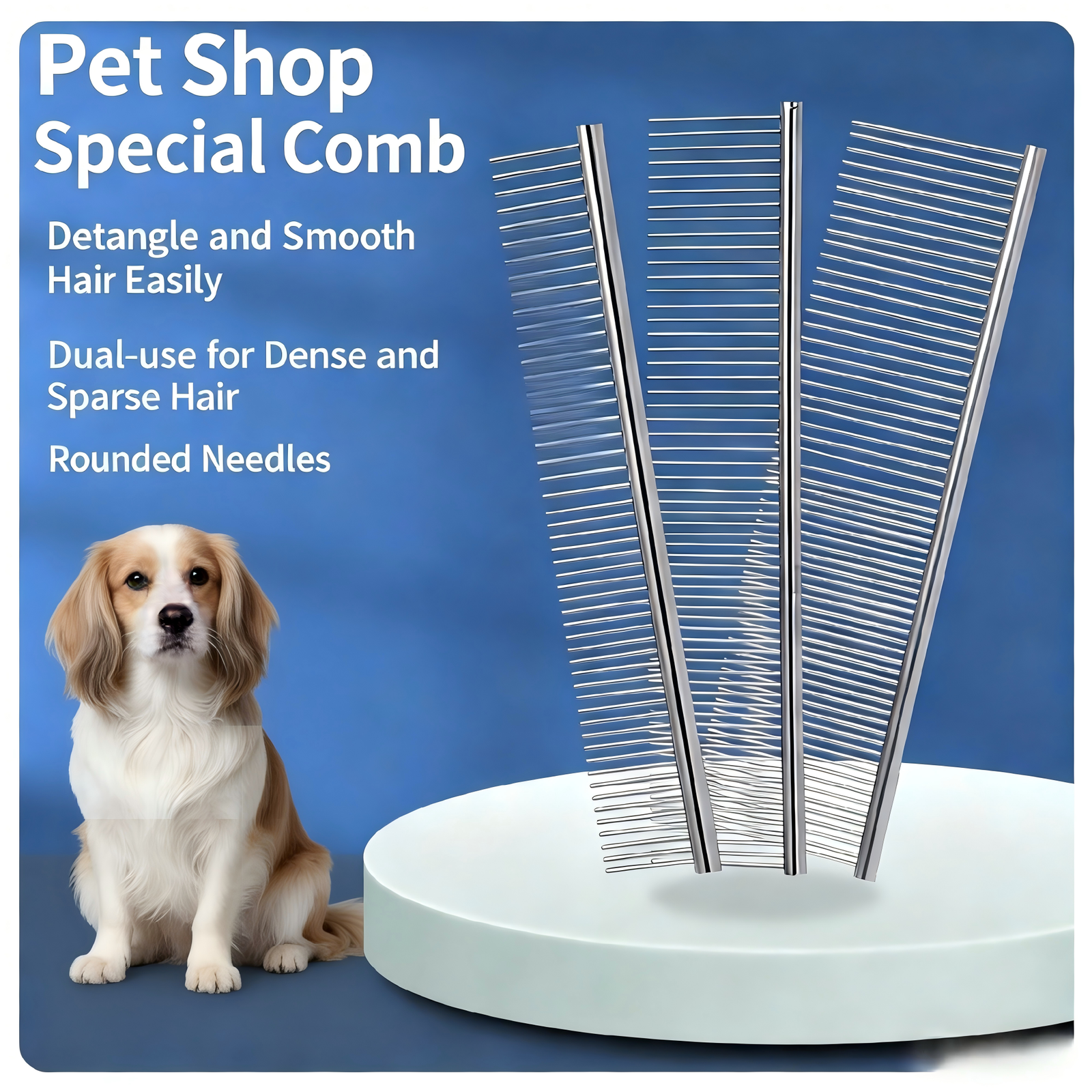 Professional 2-piece grooming set with rounded stainless steel teeth. Safely detangles long hair & desheds short coats. Ideal for cats, dogs & small pets. Promotes healthy skin & fur.