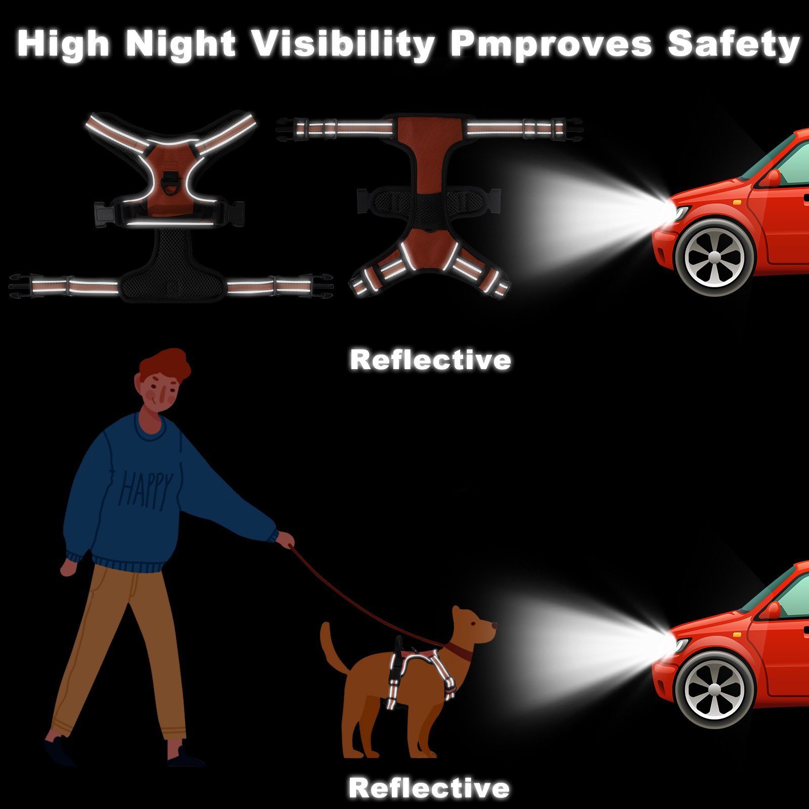 Additionally, padded chest and back panels distribute pressure evenly for all-day comfort. Importantly, this design does not restrict your dog’s natural movement. For enhanced safety, reflective strips and stitching ensure high visibility at night. As a result, both you and your pet stay safer during evening or low-light walks.
